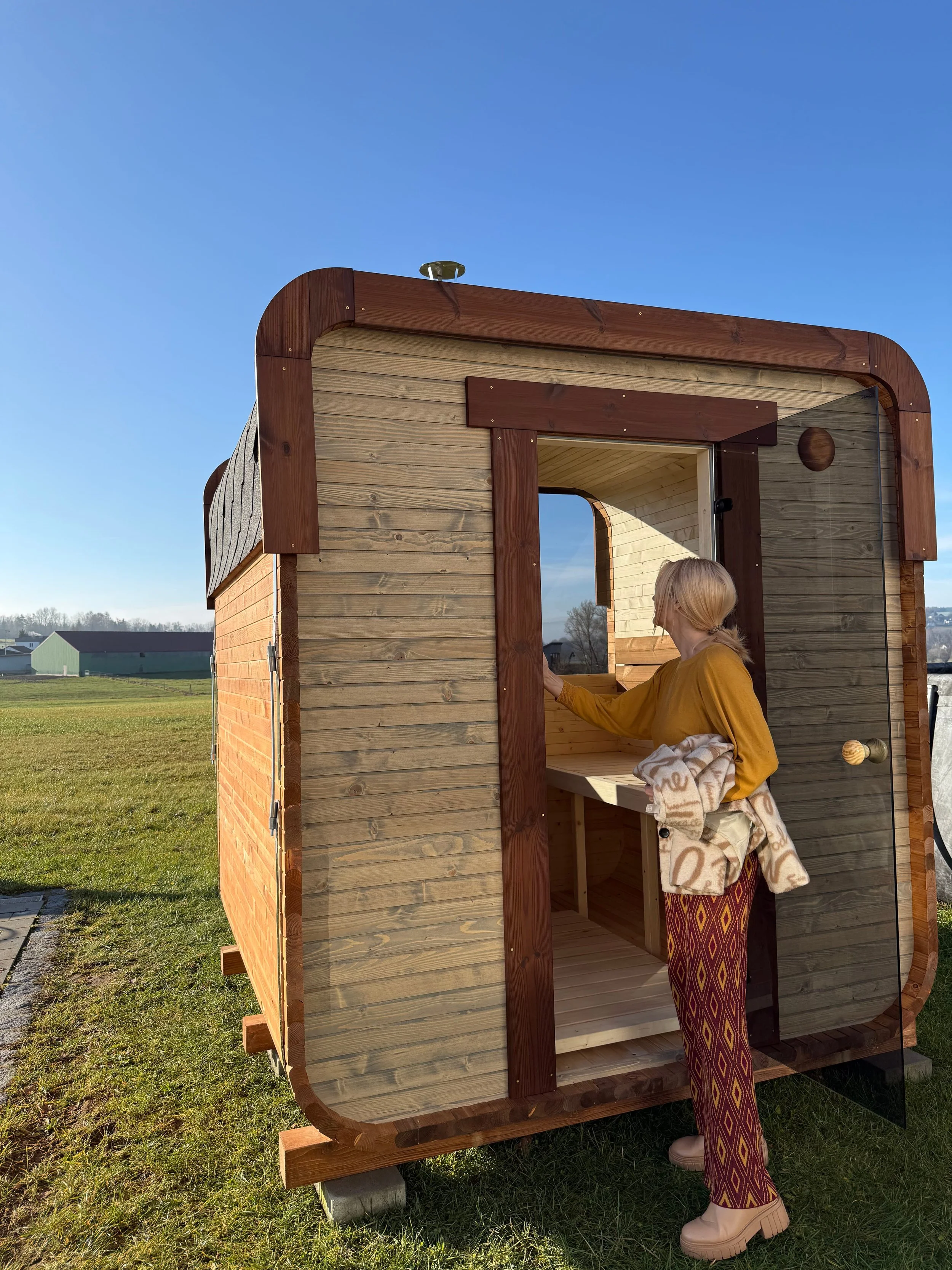 A 1 m terrace adds space for cooling down, making it ideal for longer, more ritual-focused sauna sessions.